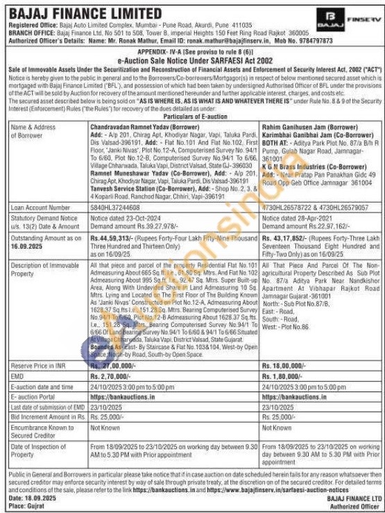 All That Piece And Parcel Of The Non-agricultural Property Described As Sub Plot No. 87/a Aditya Park Near Nandkishor Apartment At Vibhapar Rajkot Road Jamnagar Gujarat-361001 North: Sub Plot No.87/B, East:-Road, South Road, West:-Plot No.86
