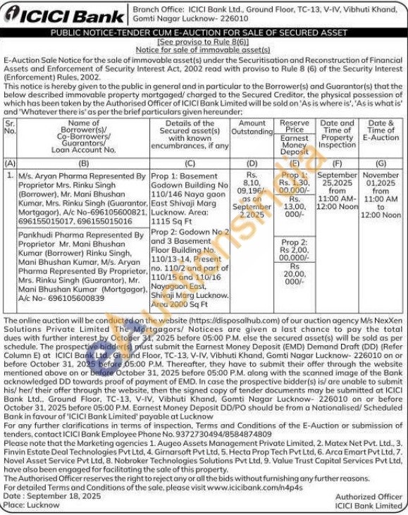 Prop 2: Godown No 2 and 3 Basement Floor Building No. 110/13-14, Present no. 110/2 and part of 110/15 and 110/16 Nayagaon East, Shivaji Marg Lucknow. Area 2000 Sq Ft
