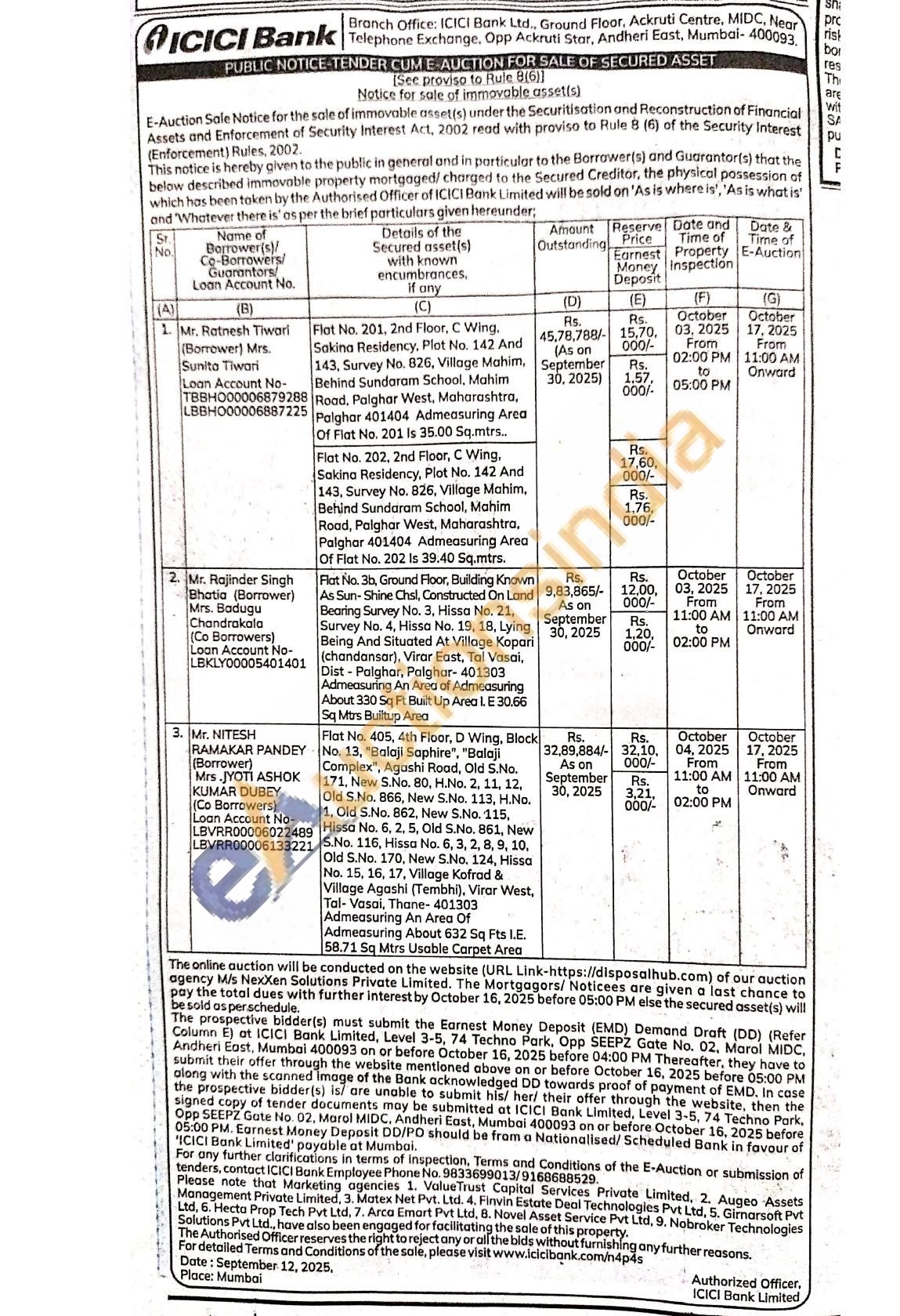 Flat No. 202, 2nd Floor, C Wing, Sakina Residency, Plot No. 142 And 143, Survey No. 826, Village Mahim, Behind Sundaram School, Mahim Road, Palghar West, Maharashtra, Palghar 401404 Admeasuring Area Of Flat No. 202 Is 39.40 Sq.mtrs