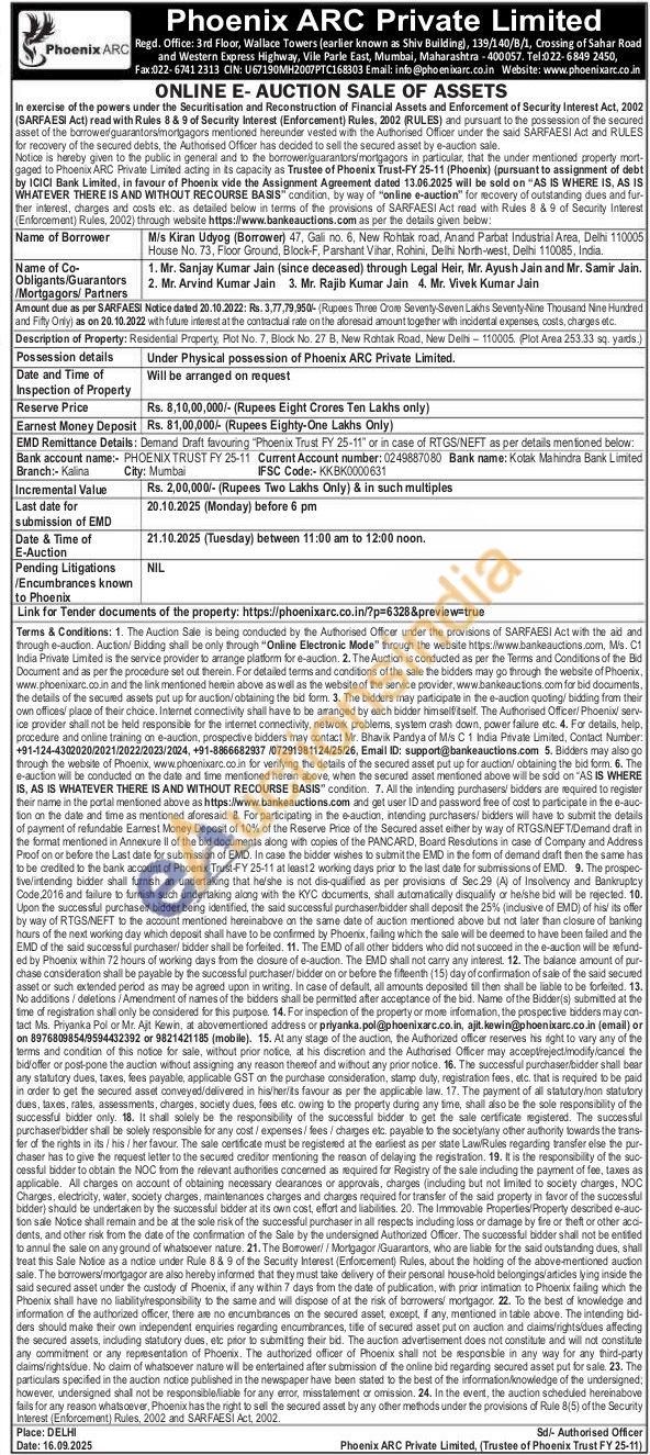 Residental Property Plot No. 7, Block No. 27.8, New Rohtak Road, New Delhi-110005 (Plot Area 253.33 sq yards)