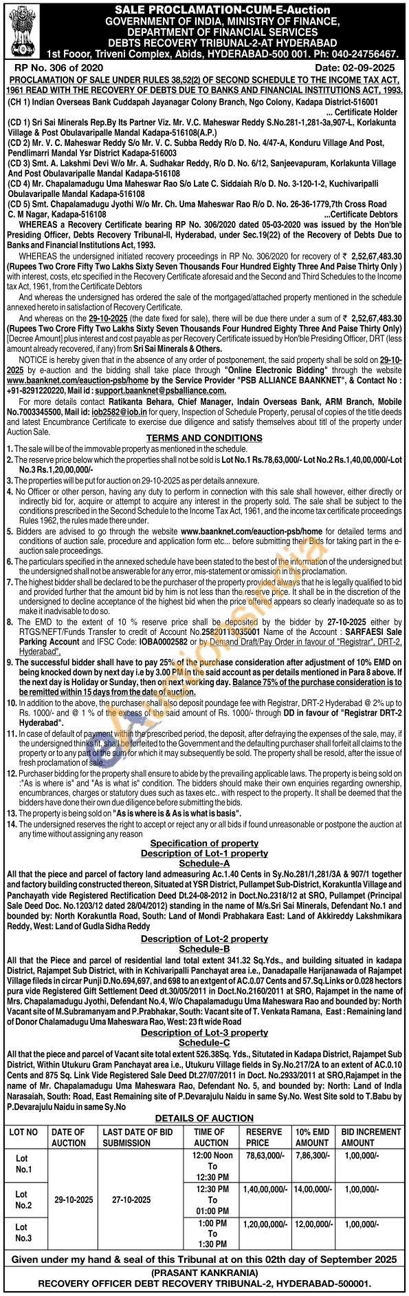 All that the piece and parcel of Vacant site total extent 526.38Sq. Yds., Situtated in Kadapa District, Rajampet Sub District, Within Utukuru Gram Panchayat area i.e., Utukuru Village fields in Sy.No.217/2A to an extent of AC.0.10 Cents and 875 Sq. Link Vide Registered Sale Deed Dt.27/07/2011 in Doct. No.2933/2011 at SRO, Rajampet in the name of Mr. Chapalamadugu Uma Maheswara Rao, Defendant No. 5, and bounded by: North: Land of Indla Narasaiah, South: Road, East Remaining site of P.Devarajulu Naidu in same Sy.No. West Site sold to T.Babu by P.Devarajulu Naidu in same Sy.No