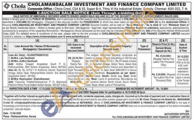 Contact Mr. Vimal Prasad on his Mobile No.: 9846358600 E-mail ID vimalprasad@chola.murugappa.com/ Mrs.Komal Sharma on 8870464652