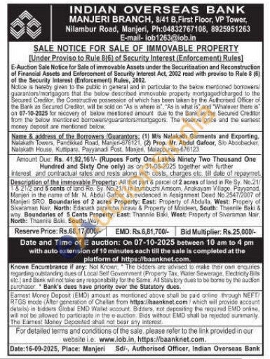 All that part & porcel of 2 acres of land in Re Sy. No.21/18 21/2 and 5 cents of land Re. Sy. No 21/1 in leumbuzhi Amsom, Anakayam Village Payyanad Manjeri in the name of Mr. N. Abdul Gafoor as evidenced in Assignment Deed No 2547/2007 of Manjeri SRO Boundaries of 2 acres Property: East: Property of Abdulla. West: Propery of Sivaraman Nay, North: E Nay, North: Edanath paramba niravu & Property of Moideen, South: Thannile Baki & way Boundaries of 5 Cants Property: East: Thannie Baki, West: Property of Sivaraman Nair, North: Thannile Boki. South: Way
