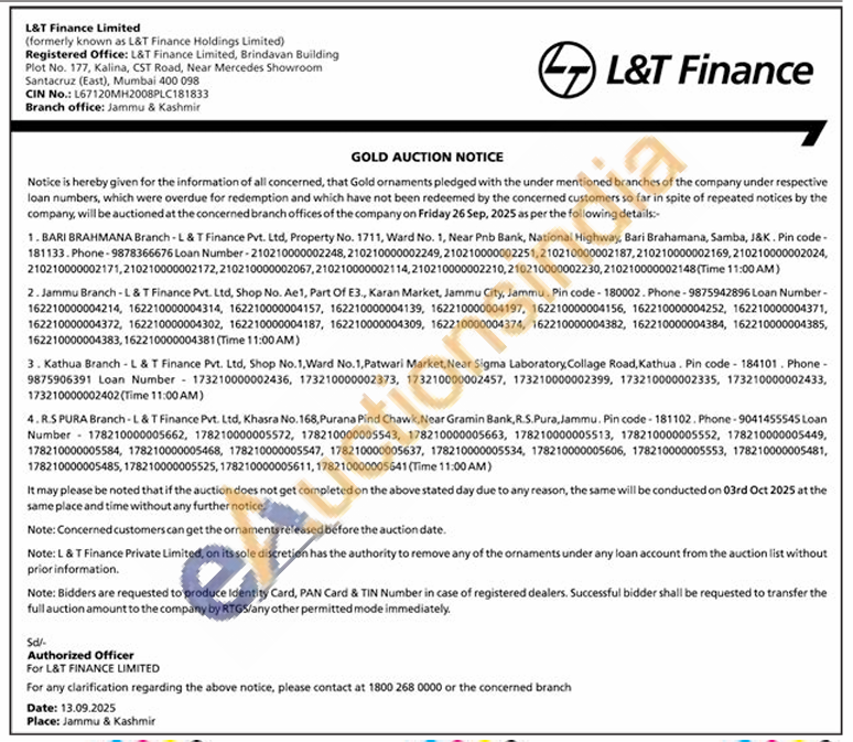 L&T Finance Ltd. Gold Auctions Auction in Mumbai