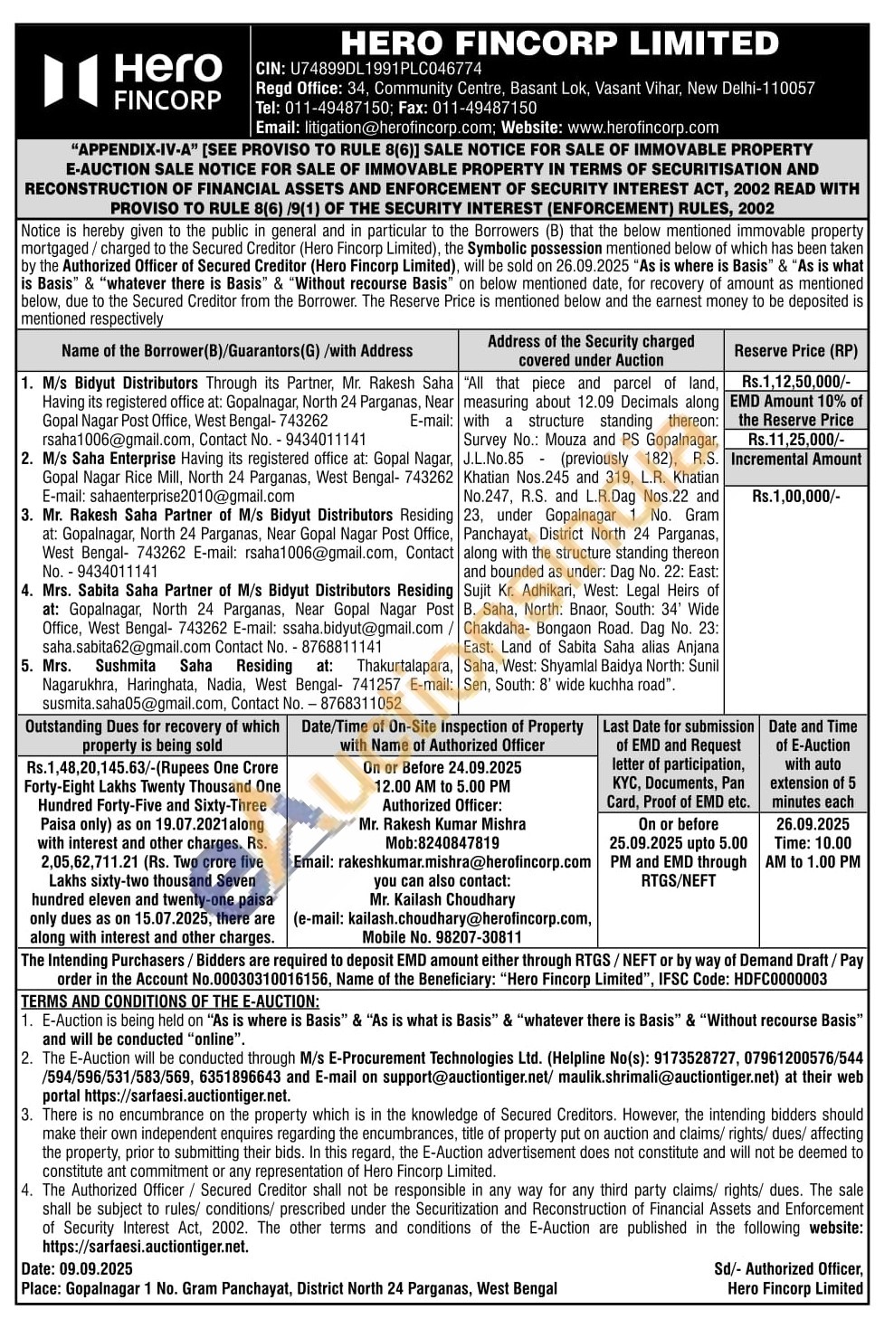 Contact Authorized Officer: Mr. Rakesh Kumar Mishra Mob:8240847819