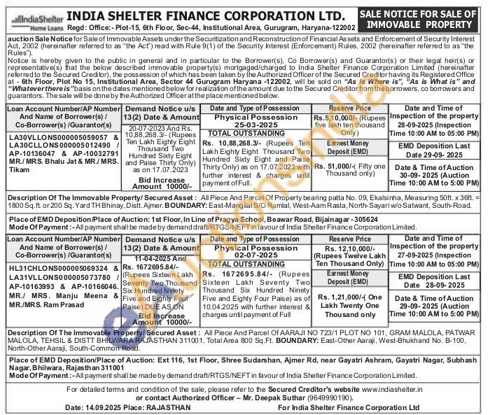 contact Authorized Officer - Mr. Deepak Suthar (9649990190)