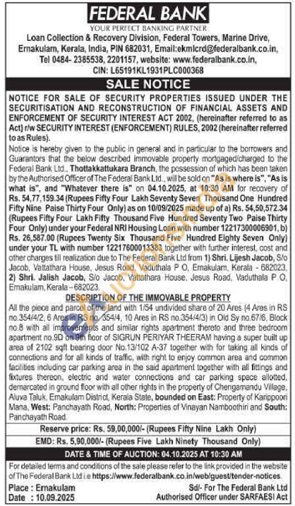 Contact Tel 0484-2385538, 2201157, website: www.federalbank.co.in