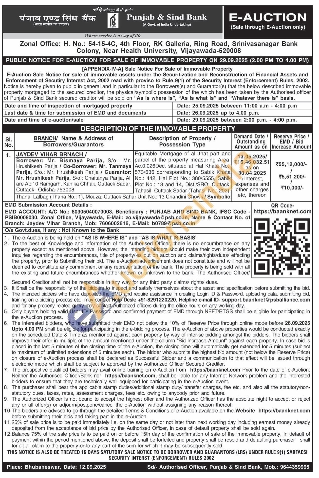 Contact No. of Branch: Jaydev Vihar Branch, Mob: 7606002616, E-Mail: b0789@psb.co.in