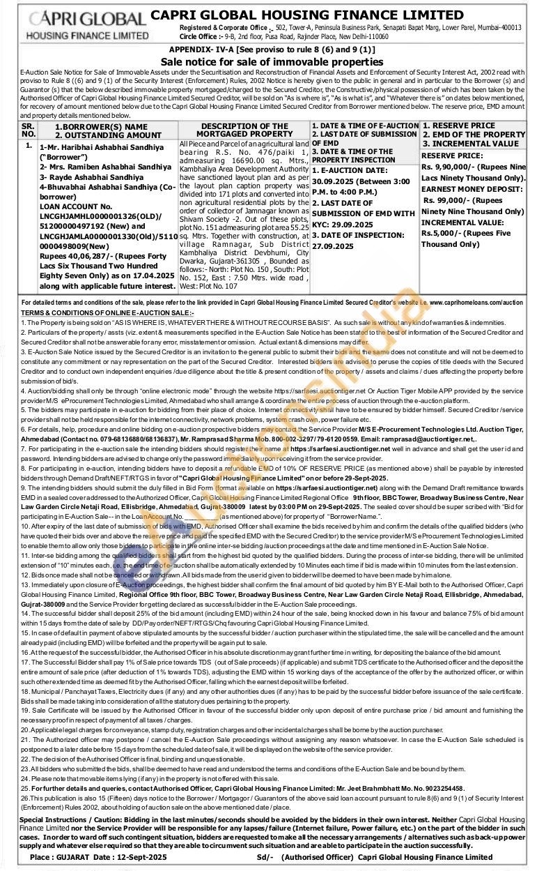 contact Authorised Officer, Capri Global Housing Finance Limited: Mr. Jeet Brahmbhatt Mo. No. 9023254458.