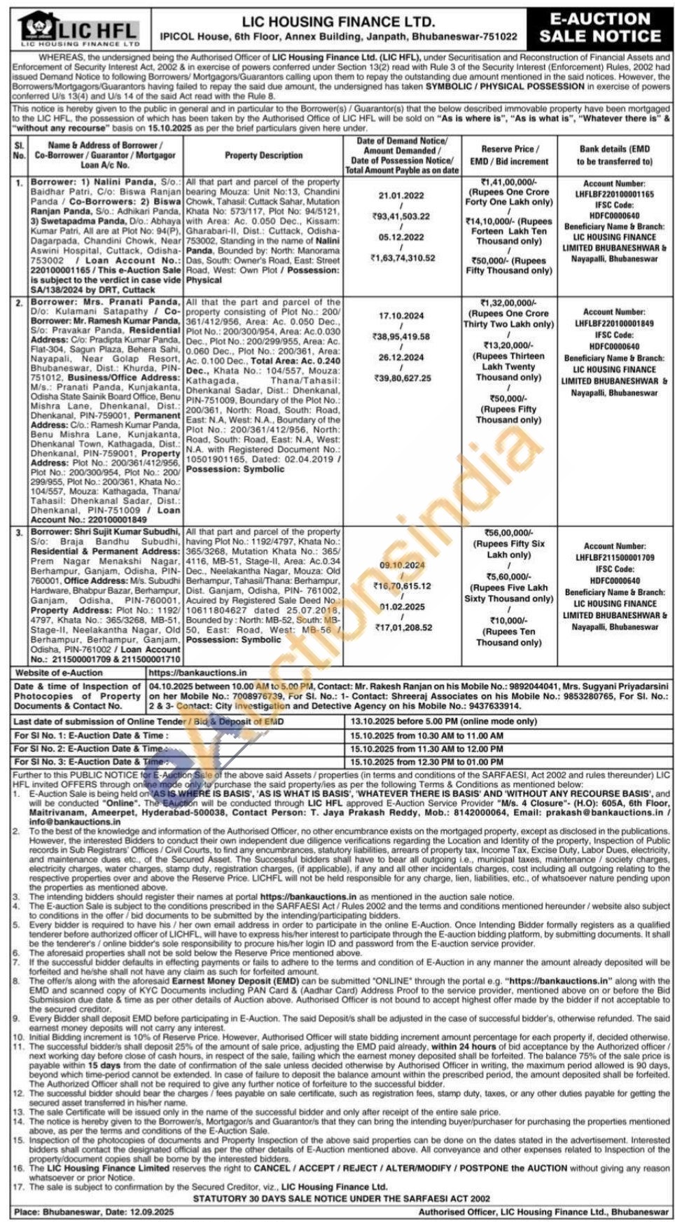 All that part and parcel of the property having Plot No.: 1192/4797, Khata No.: 365/3268, Mutation Khata No.: 365/4116, MB-51, Stage-II, Area: Ac.0.34 Dec., Neelakantha Nagar, Mouza: Old Berhampur, Tahasil/Thana: Berhampur, Dist. Ganjam, Odisha, PIN-761002, Acuired by Registered Sale Deed No.: 10611804627 dated 25.07.2018. Bounded by: North: MB-52, South: MB-50, East: Road, West: MB-56/Possession: Symbolic