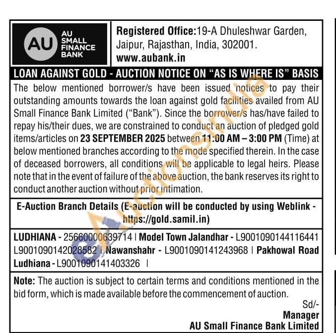 AU Small Finance Bank Gold Auctions Auction in Jaipur