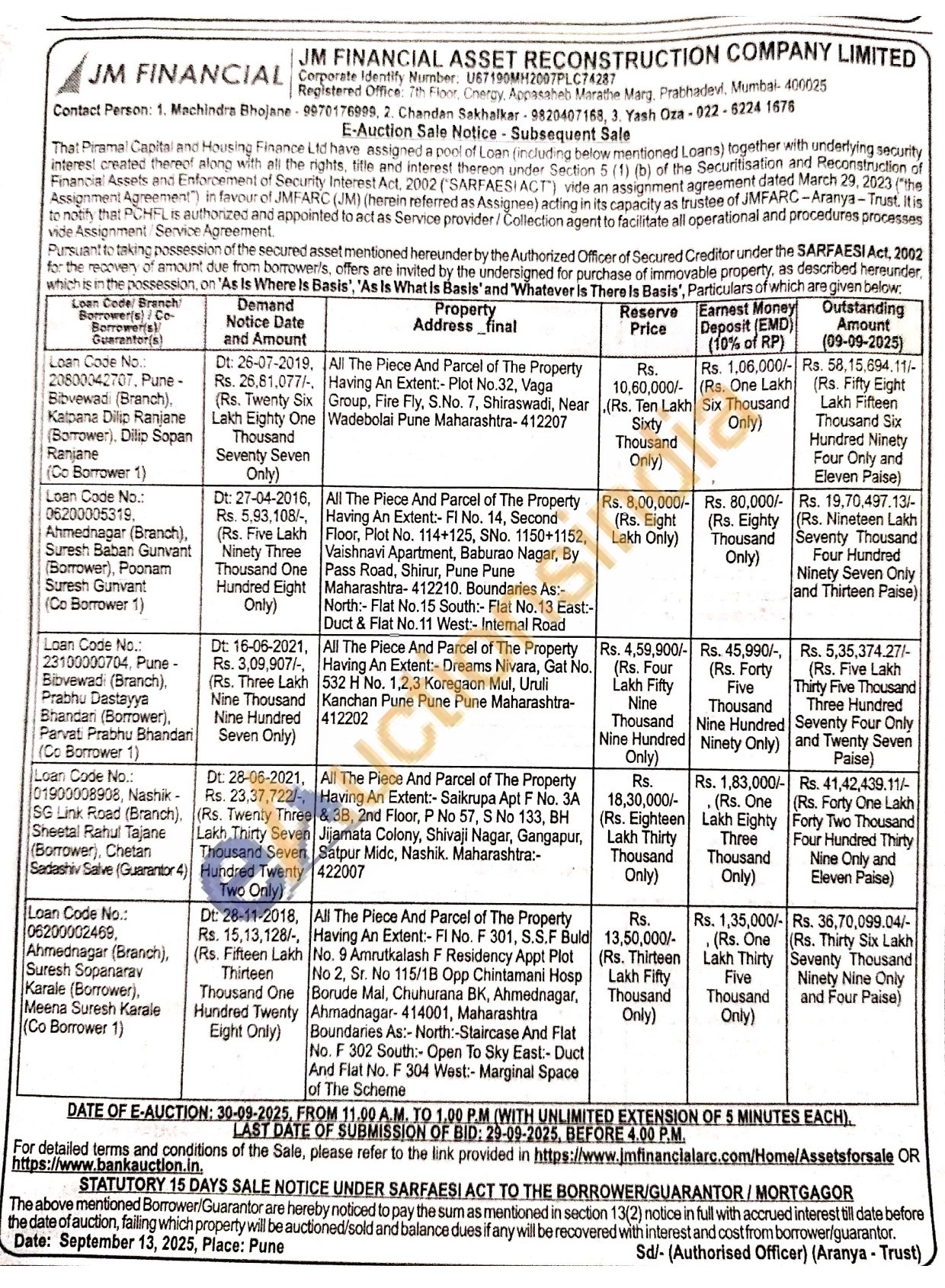 All The Piece And Parcel of The Property Having An Extent:-FI No. F 301, S.S.F Buld No. 9 Amrutkalash F Residency Appt Plot No 2, Sr. No 115/1B Opp Chintamani Hosp Borude Mal, Chuhurana BK, Ahmednagar, Ahmadnagar-414001, Maharashtra Boundaries As:- North:-Staircase And Flat No. F 302 South: Open To Sky East:- Duct And Flat No. F 304 West:- Marginal Space of The Scheme