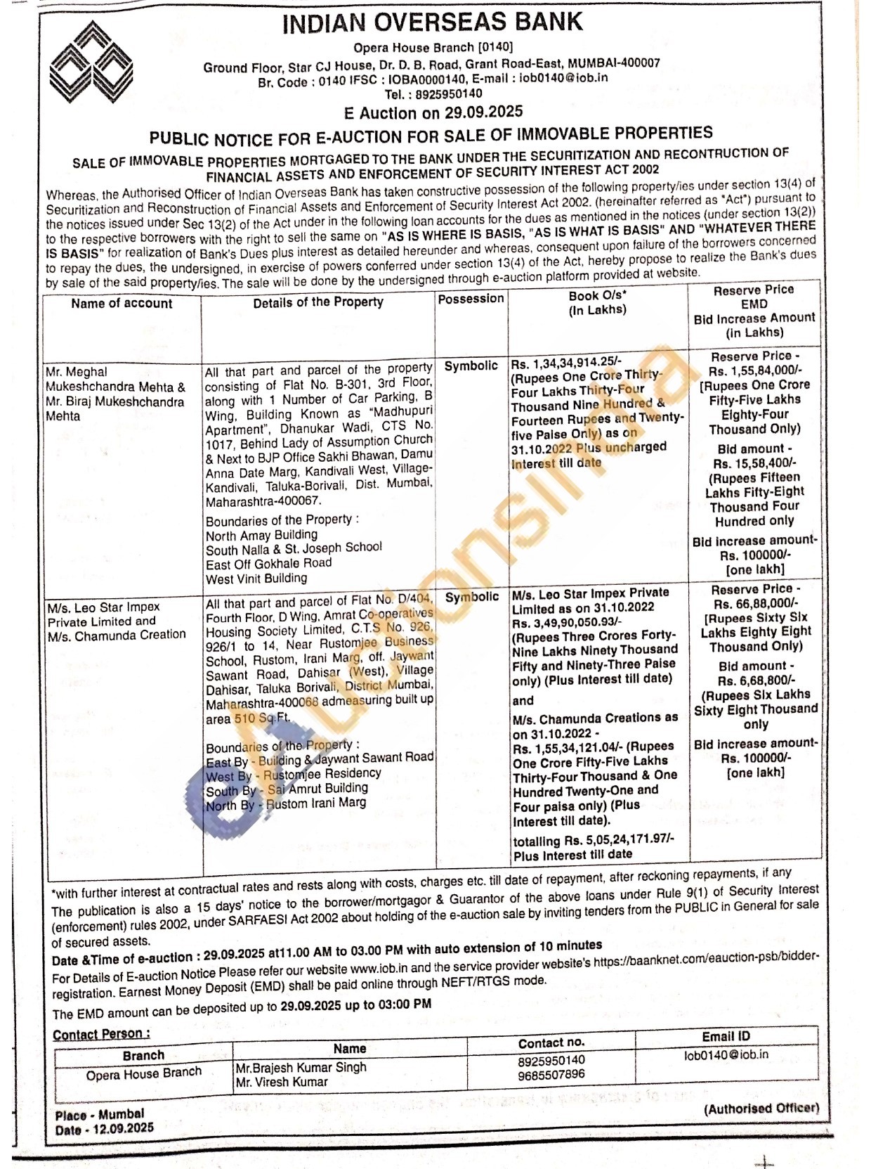 All that part and parcel of Flat No. D/404, Fourth Floor, D Wing, Amrat Co-operatives Housing Society Limited, C.T.S No. 926, 926/1 to 14, Near Rustomjee Business School, Rustom, Irani Marg, off. Jaywant Sawant Road, Dahisar (West). Village Dahisar, Taluka Borivali, District Mumbai, Maharashtra-400068 admeasuring built up area 510 Sq.Ft Boundaries of the Property: East By - Building & Jaywant Sawant Road West By Rustomjee Residency South By Sai Amrut Building North By Rustom Irani Marg