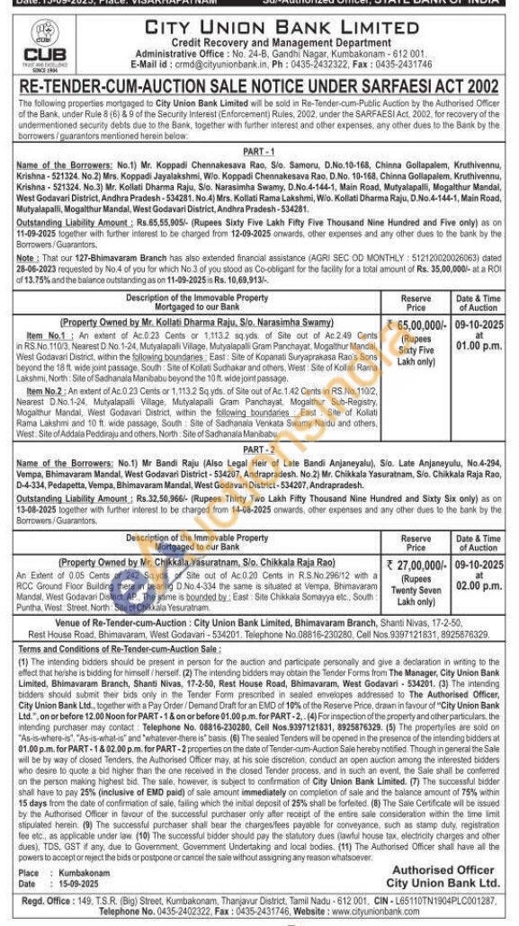 An Extent of 0.05 Cents or 242 Sq yds of Site out of Ac.0.20 Cents in RS.No.296/12 with a RCC Ground Floor Building there in bearing D.No 4-334 the same is situated at Vempa, Bhimavaram Mandal, West Godavari Distinct, AP The same is bounded by. East Site Chikkala Somayya etc. South Puntha West Street North Site of Chikkala Yesuratnam