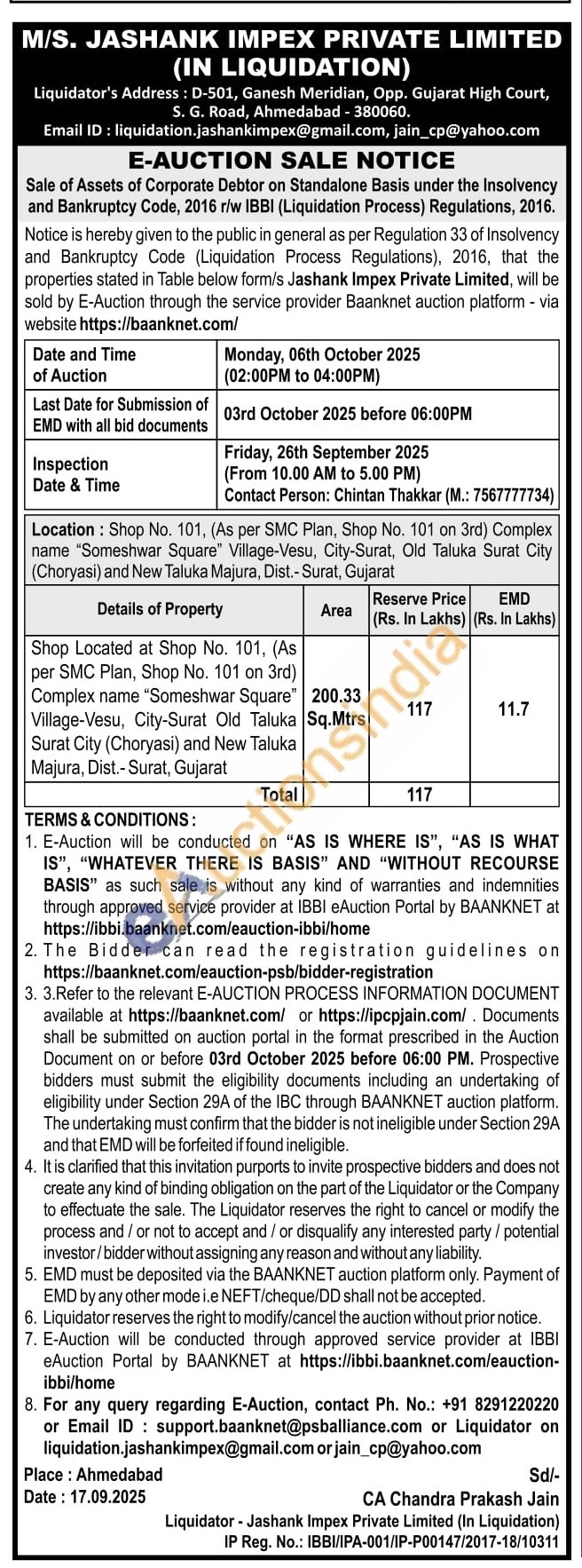 Shop Located at Shop No. 101, (As per SMC Plan, Shop No. 101 on 3rd) Complex name "Someshwar Square" Village-Vesu, City-Surat Old Taluka Surat City (Choryasi) and New Taluka Majura, Dist.-Surat, Gujarat