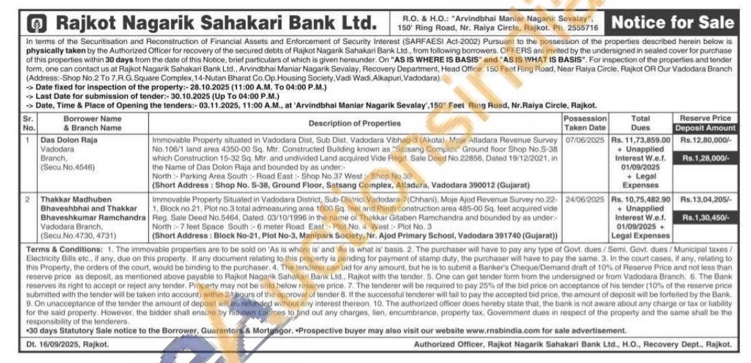 Immovable Property situated in Vadodara Dist, Sub Dist. Vadodara Vibhag-3 (Akota), Moje Alladara Flevenue Survey No.106/1 land area 4350-00 Sq. Mtr. Constructed Building known as "Satsang Complex Ground floor Shop No.5-38 which Construction 15-32 Sq. Mtr. and undivided Land acquired Vide Regd. Sale Deed No.22856, Dated 19/12/2021, in the Name of Das Dolon Raja