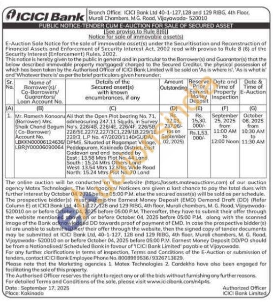 All that the Open Plot bearing No. 71. admeasuring 247.11 Sayds, in Survey No's. 226/48. 226/4E, 226/4F, 226/58. 226/58.227/2,227/3C1,229/18,229/18. 229/3, LP No. 47/2020/1140/GUDA// DPMS, Situated at Ragampet Village. Peddapuram, Kakinada District, East Godavari and and bounded by East: 13.58 Mtrs Plot No. 44 Land South: 15.24 Mtrs Others Land West: 13.54 Mtrs 12 Mtrs Wide Road North: 15.24 Mtrs Plot No. 70 Land