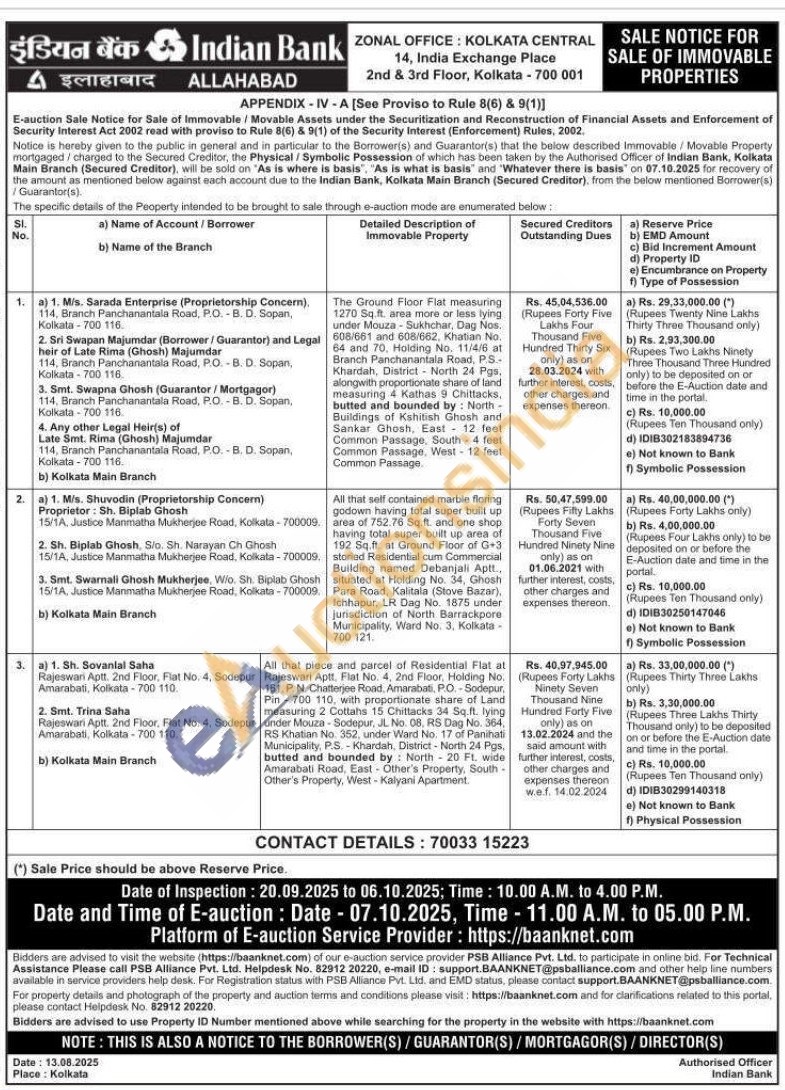 1) The Ground Floor Flat measuring 1270 Sq.ft. area more or less lying under Mouza Sukhchar, Dag Nos. 608/661 and 608/662, Khatian No. 64 and 70, Holding No. 11/4/6 at Branch Panchanantala Road, P.S-Khardah, District North 24 Pgs, alongwith proportionate share of land measuring 4 Kathas 9 Chittacks, butted and bounded by: North-Buildings of Kshitish Ghosh and Sankar Ghosh, East 12 feel Common Passage, South-4 feat Common Passage, West-12 feet Common Passage.