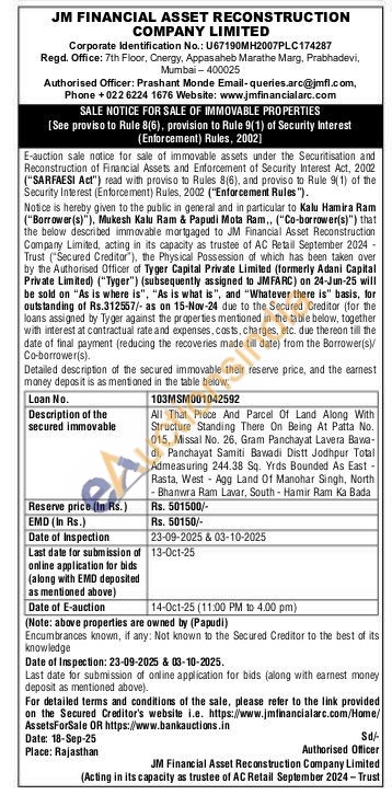 All That Piece And Parcel Of Land Along With Structure Standing There On Being At Patta No. 015, Missal No. 26, Gram Panchayat Lavera Bawa-di, Panchayat Samiti Bavwadi Distt Jodhpur Total Admeasuring 244.38 Sq. Yrds Bounded As East -Rasta, West Agg Land Of Manohar Singh, North Bhanwra Ram Lavar, South Hamir Ram Ka Bada