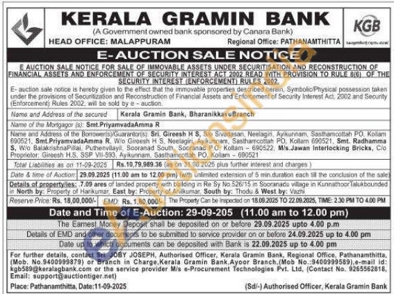 7.09 ares of landed property with building in Re Sy No 526/15 in Sooranada village in Kunnathoor Talukbounded in North by: Property of Harikumar. East by: Property of Anilkumar, South by: Thodu & West by: Vazhi