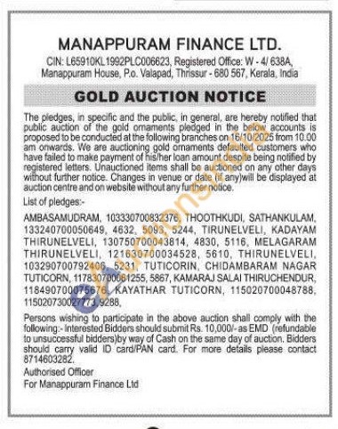 Manappuram Finance Ltd Gold Auctions Auction in Thoothukudi