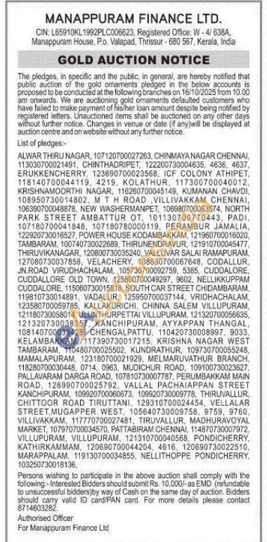 Manappuram Finance Ltd Gold Auctions Auction in Alwar
