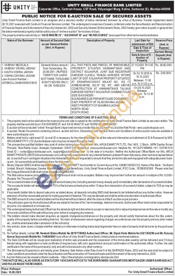 ALL THAT PIECE AND PARCEL OF IMMOVEABLE PROPERTY SITUATED HANMANT WADI AND DISTRICT KOLHAPUR, JOINT SUB REGISTRAR KARVEER CLASS-2, TAHASIL KARVEER, WITHIN LIMIT OF DIST. KOLHAPUR PROPERTY SITUATED AT GRAMPANCHAYAT MILKAT NO. 152 IT ADMEASURING 322.57 SQ. MT., AND ABOVE CONSTRUCTION AT HANMANTWADI TALUKA KARVEER DISTRICT KOLHAPUR COMBINE FOUR SIDE ISASUNDER:-BOUNDARIES(AS PER MORTGAGE DOCUMENT): EAST:PROPERTY OF VILAS DNYANU JADHAV WEST PROPERTY OF SHAMRAOJADHA/NORTH: ROAD