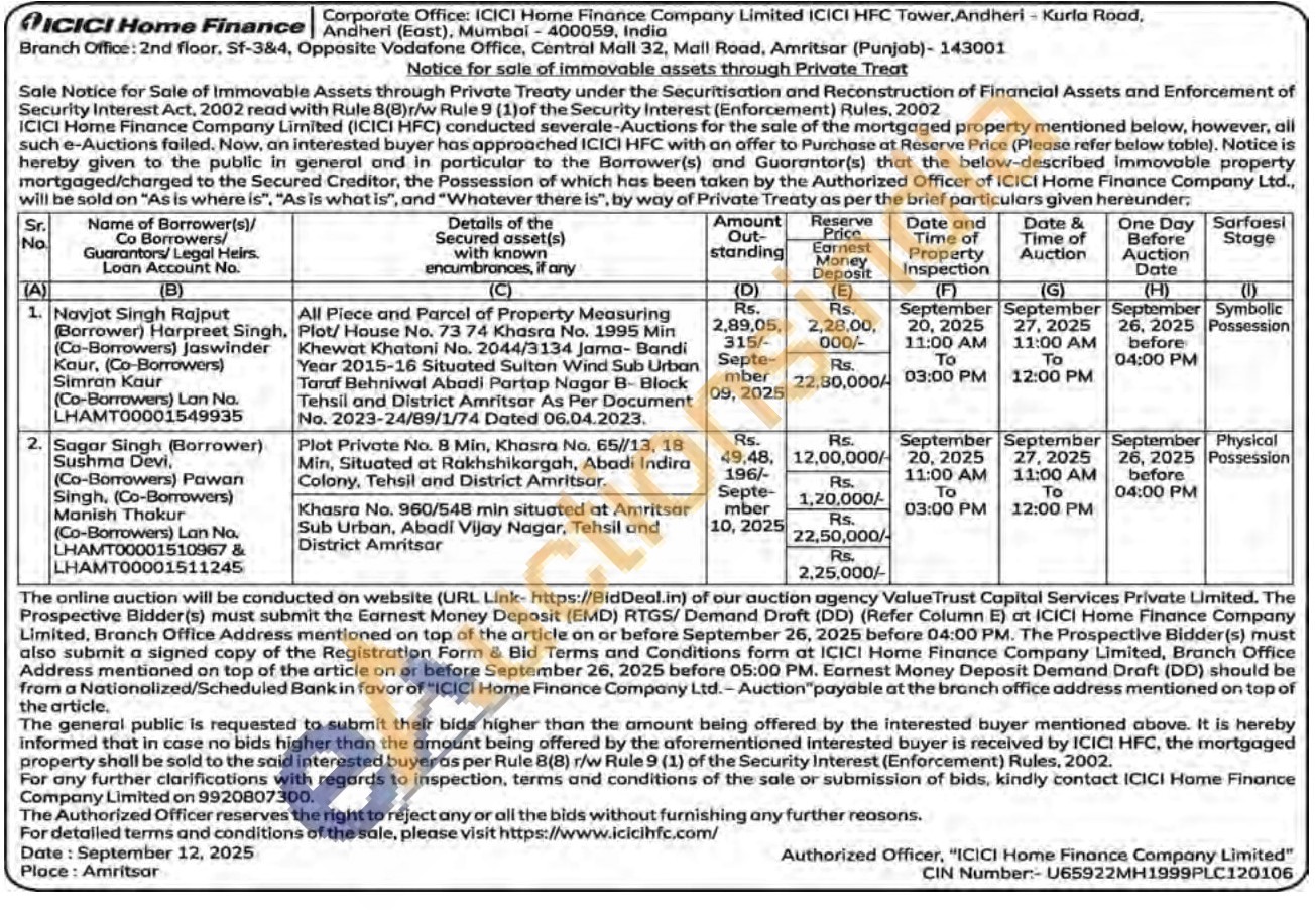 2) 2)Khasra No. 960/548 min situated at Amritsar Sub Urban, Abadi Vijay Nagar, Tehsil and District Amritsar