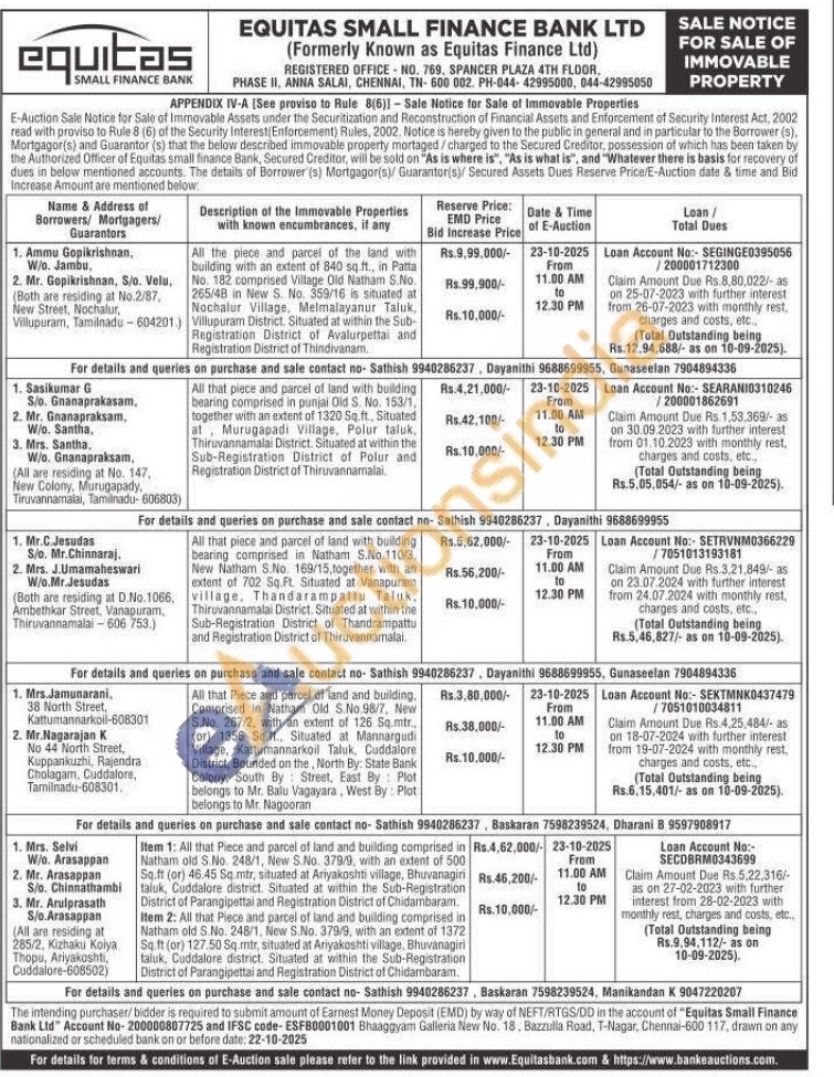 All that piece and parcel of land with building bearing comprised in punjai Old S. No. 153/1, together with an extent of 1320 Sq. ft., Situated at Murugapadi Village, Polur taluk, Thiruvannamalai District. Situated at within the Sub-Registration District of Polur and Registration District of Thiruvannamalai.