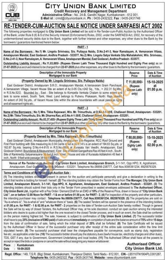 East Godavari District, Amalapuram Municipality, Amalapuram Sub-Registrar, RCC Roof Ground and First Floor building with Site measuring Ac.0.04 Cents in full ie Ac. 0.14% is an extent of 194.63 Sq yds. or 162.87 Sq.mts. bearing D.No 4-4-91/5 in R.S.No.495/8 at Kurasala Vari Veedhi, Amalapuram, East Godavan Distict. Boundanes & Measurement, East: Site of Medidi Gangadhara Rao 45 feet 4 inch, South Site of Rankireddy Satyanarayana 38 feet 6 inch. West House and site of Kurasala Adilakshmi 45 feet 4 inch, North: 9 feet wide passage 38 feet 6 inch