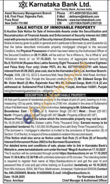 All that part & parcel of residential property in the shape of plot of Land, bearing no.4 min, measuring 125 sq yards, falling in khasra no 2190 min, situated in the area of Sultanwind Urban Pati Behniwal, Tehsil and District Amritsar, belonging to Mr. Eddwad Gorge Boundaries: East: Property of S. Kashmir Singh (25-00) West: Street (25-00") North: Property of S. Gurmukh Singh (45-00) South: Property of Bholi (45-00")