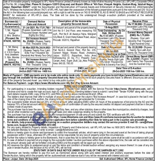All that part and parcel of the property bearing Unit No S-1 2nd Floor, area measuring 700 soft. Plot No E 21 Awasiya Yojna, Manglam City Block E. Gram Hatoj Kalwar Road, Jaipur. Pincode: 302012. Rajasthan