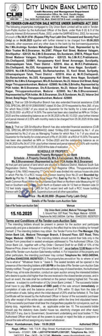 All that part and parcel of land which are situated on Madurai District, Madurai South Sub Registration District Thiruppararkundran Sub Registrar Office, Thirupparankundram Village in S.No. 1602 measuring 77 Cents which was divided into various house sile plots which Plot No. 13 a RCC house bult thereon bearing Door No 23 and Bounded by: North bry Plot No. 11. South by Balaji Nagar Plot, East by Plot No.15, West by 20 Feet width Common Road Within the Boundaries East West on Northern side Measuring 44 1/2 feet on Southem side 4 feet, South North on Eastem side 34 1/2 feet on Western side 33 1/2 feet totally measuring 1.505.54 5qft sacant land with bult a RCC house building thereon with Doons. Windows, Superstructure and all other specialities
