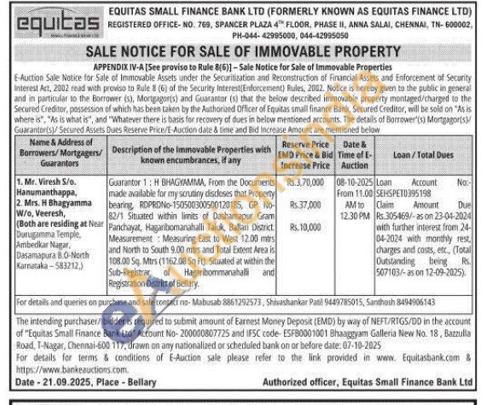 Guarantor 1: BHAGYAMMA, From the Documents made available for my scrutiny disdeses thar Property bearing, ROPRONo-150500300500120185, GP No 82/1 Situated within limits of Dashamapur Gram Panchayat, Hagaribomanahalli Taluk, Ballari District Measurement: Measuring East to West 12:00 m and North to South 9.00 mtrs and Total Extent Area is 108.08 5g Mors (1162.08 50 Ft). Situated at within the Sut-Registrar of Hagaribommanahalli and Registration Destrict of Bellary.