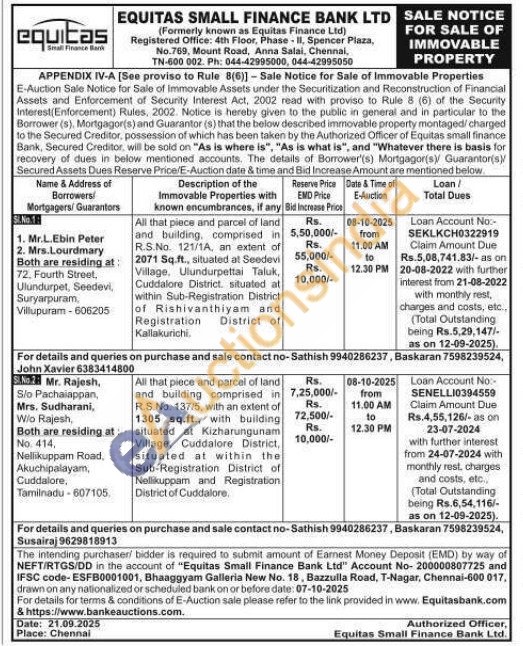All that piece and parcel of land and building, comprised in R.S.No. 121/1A, an extent of 2071 Sq.ft., situated at Seedevi Village, Ulundurpettai Taluk, Cuddalore District situated at within Sub-Registration District of Rishivanthiyam and Registration District of Kallakurichi
