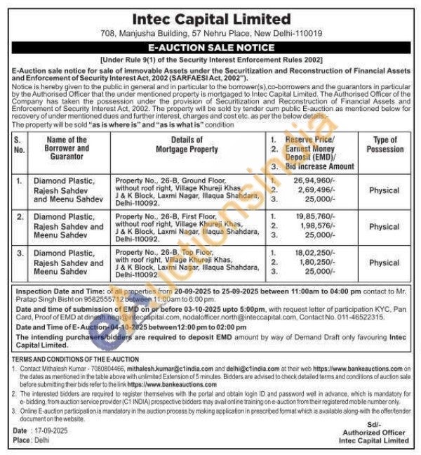 Property No., 26-B, Ground Floor, without roof right, Village Khureji Khas, J&K Block, Laxmi Nagar, Illaqua Shahdara, Delhi-110092.