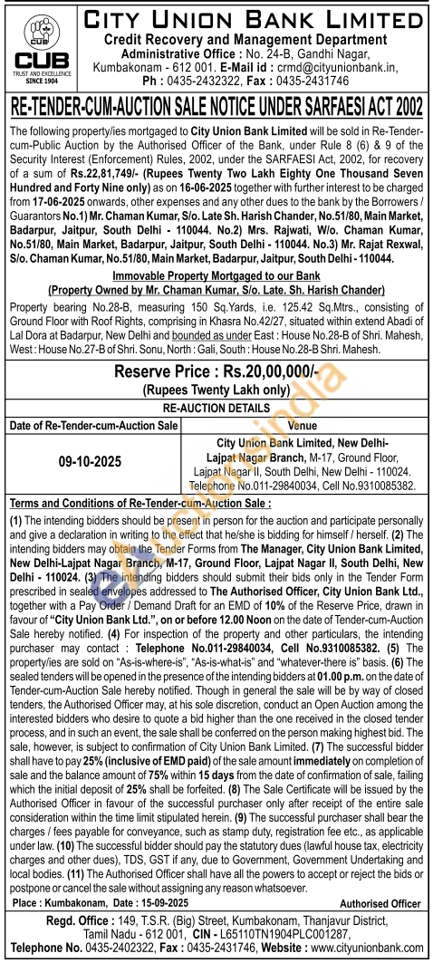 Property bearing No.28-B, measuring 150 Sq. Yards, i.e. 125.42 Sq.Mtrs., consisting of Ground Floor with Roof Rights, comprising in Khasra No.42/27, situated within extend Abadi of Lal Dora at Badarpur, New Delhi and bounded as under East: House No.28-B of Shri. Mahesh, West: House No.27-B of Shri. Sonu, North: Gali, South: House No.28-B Shri. Mahesh.