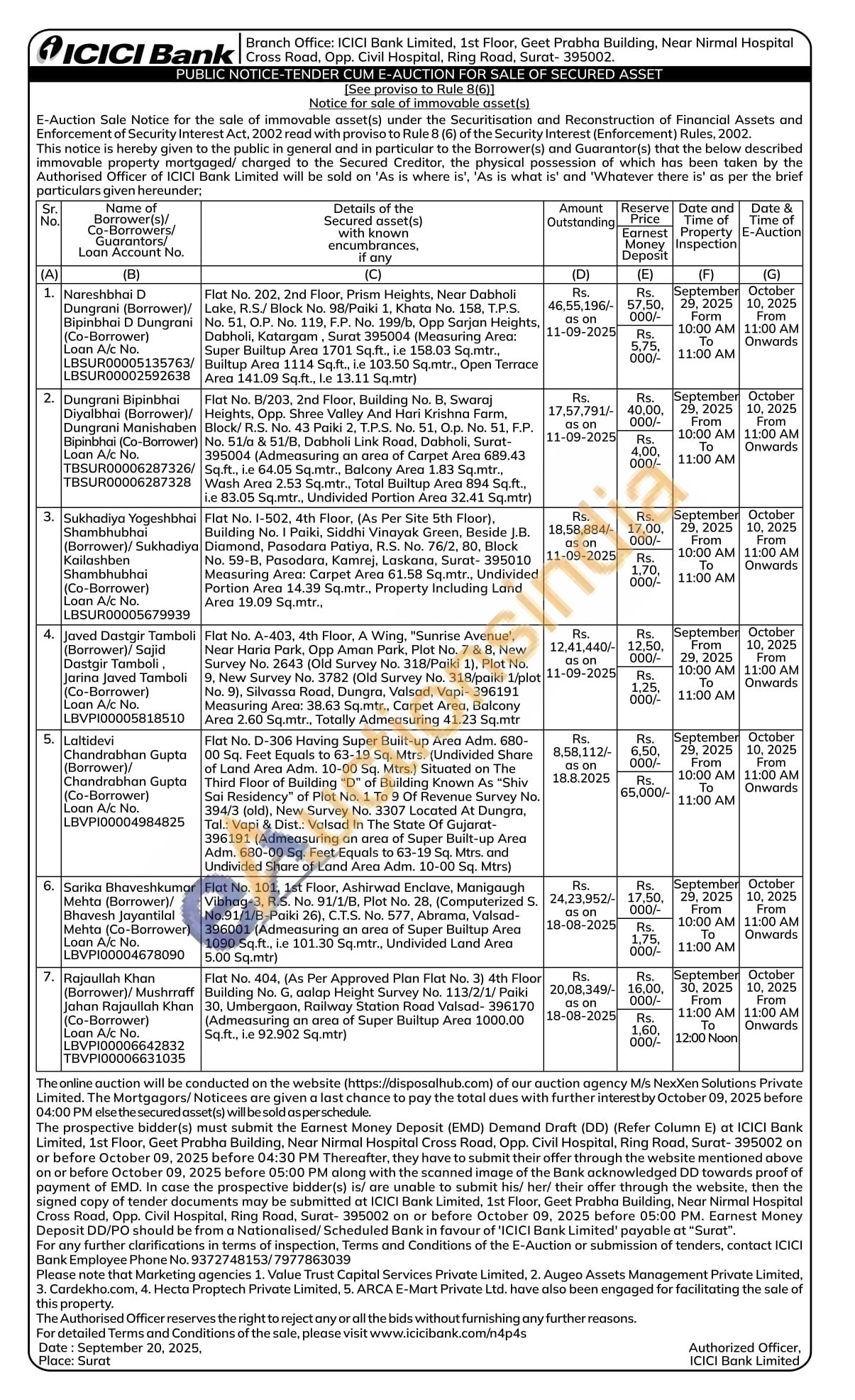 Flat No. B/203, 2nd Floor, Building No. B. Swaraj Heights, Opp. Shree Valley And Hari Krishna Farm, Block/R.S. No. 43 Paiki 2. T.P.S. No. 51, O.p. No. 51. F.P. No. 51/0 & 51/B, Dabholi Link Road, Dabholi, Surat-395004 (Admeasuring an area of Carpet Area 689.43 Sq.ft., i.e 64.05 Sq.mtr., Balcony Area 1.83 Sq.mtr... Wash Area 2.53 Sq.mtr., Total Builtup Area 894 Sq.ft., ie 83.05 Sq.mtr., Undivided Portion Arco 32.41 Sq.mtr)