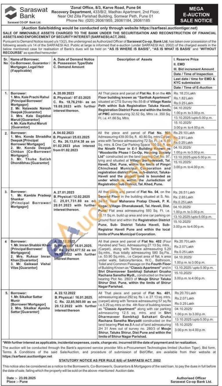 All that piece and parcel of Flat No. 402 (Four Hundred and Two), Admeasuring 27 13 Sq. mtrs (Carpet), along with Terrace admeasuring 5.29 Sq.mtrs., thus totally admeasuring 580 Sq. Fts e. 53.90 Sq.mtrs, Le Carpet area of flat, k area under walls, balcony/terrace. W.C., Bathroom, Todet and Common Passage on the Fourth Floor of Building Known as "Classic Apartment" and in Shri Dharmaveer Sambhaji Sahakari Gruaha Rachana Sanstha Mydt., constructed on the land bearing Plot No. 250/3 of Mouje Shirur Taluka Shirur Dist. Pune, within the limits of Shirur Nagar Parishad, Gruaha