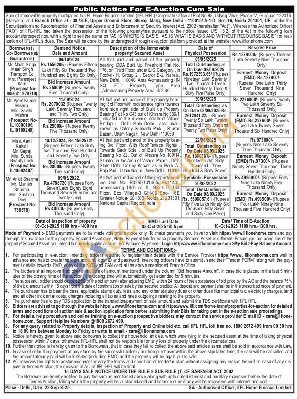 All that part and parcel of the property bearing DDA Built Up Freehold Flat No. 176, on Third Floor, under LIG Category, in Pocket-H, Group 2, Sector B-2, Narela, New Delhi, 110040. Area Admeasuring (IN SQ. FT.): Property Type: Area Admeasuring Property Area: 452.00