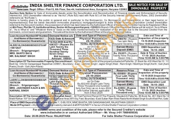 All That Part And Parcel Of The Property Situated At Patta No. 95 Book No. 451 Ward No 12 Matili Rathan 15 F Sri Ganganagar Rajasthan Bikaner Area 3970 Sq. Feet, Boundary:-East:Sultan Ram West: Rasta North: Malak Singh South: Khali Piot, Gate