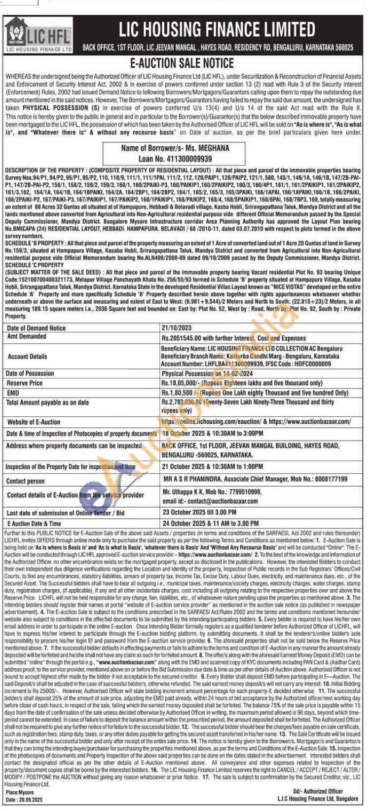 All that piece and parcel of the immovable properties bearing Survey Nas. 94/P1, 84/P2, 95/P1, 95/P2, 110, 110/9, 111/1, 111/17, 111/2, 112, 120/PAJP1, 120/PAIP2, 121/1,580, 145/1, 146/14, 146/18, 147/28-PAI-P1, 147/28-PAI-P2, 158/1, 188/2, 159/2, 159/3, 100/1, 160/2PAIKI-P3, 150/PAIKIP1,180/2PAJKIP2, 160/3, 180/4P1, 181/1, 181/2PA/P1, 161/2PAIKIP2 161/3,182, 154/14, 164/13, 164/1ΒΡΑΙΚΙ, 164/24, 164/28P1, 164/28P2, 164/1, 165/2, 165/3, 166/3PAIN), 166/1APAI, 166/TAPAIKI, 166/18, 186/2ΡΑΙΚΙ, 186/2PAKI-P2, 167/PAKI-P3, 167/PAIKIP1, 167/PAIKIP2, 168/1PAIKIP1, 168/PAIKIP2, 168/4, 168/SPAKIP1, 168/SPAL, 168/78P3, 105, totaly measuring an extent of Acres 32 Gurtas all cituated at of Hampapare, Hebbadi & Betavadi village. Kasha Hobil, Srirangapaltana Taluk, Mandya District and all the land's mentioned above converted from Agricultural into Noe-Agricultural residential purpose vide different Official Memorandum passed by the Special dum paused by the Special Deputy ty Commissioner, Mandya District, Bangalore Mysore Infrastructure corridor Area Planning Aut Authority has approved the Layo Layout Plan bearing No. BMICAPA (24) RESIDENTIAL LAYOUT HEBBADI HAMPAPURA, BELAVADI/68/2010-11, dated 03.07.2010 with respect to plots formed in the shove survey numbers.