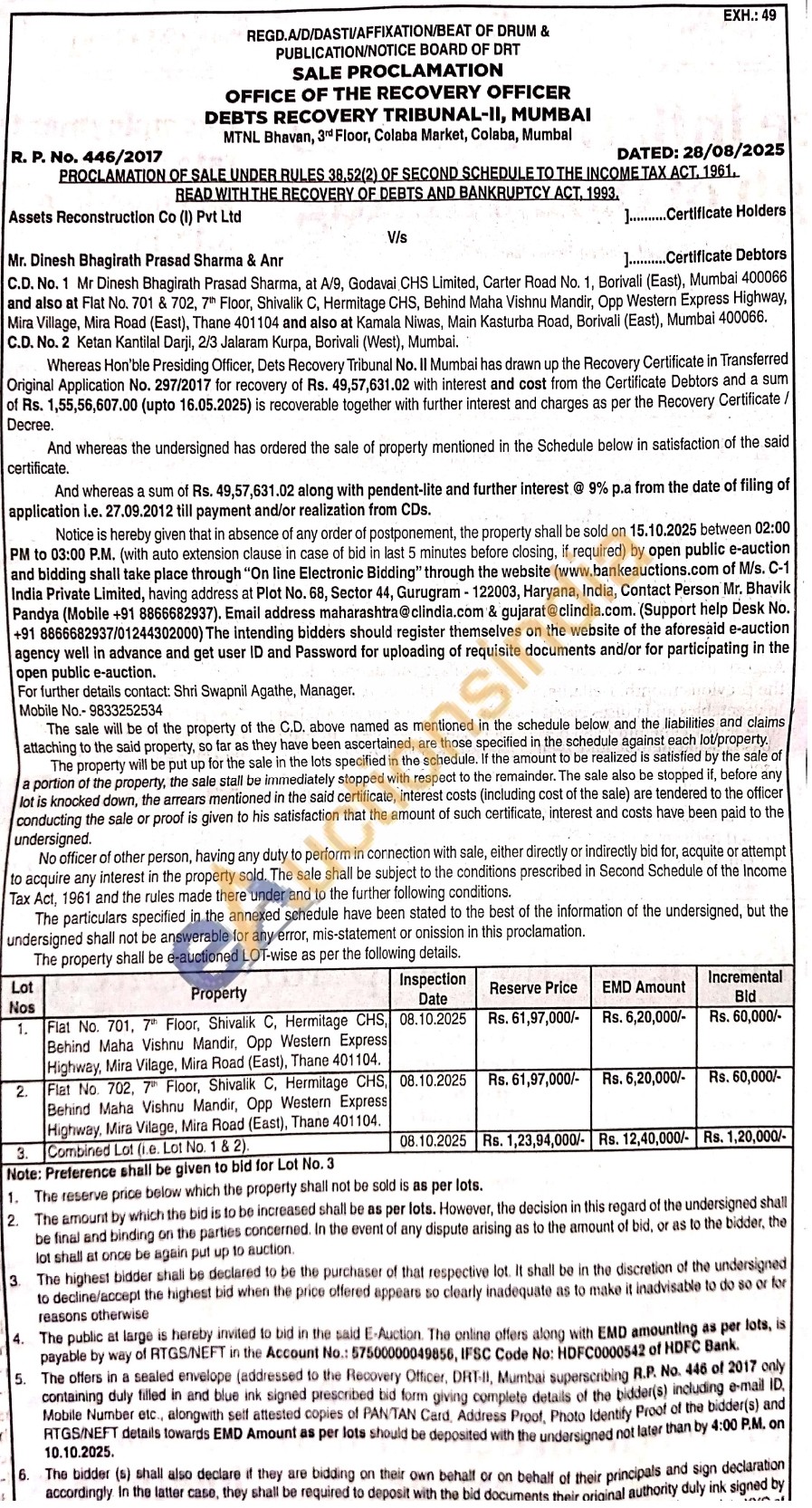 Flat No. 702, 7 Floor, Shivalik C, Hermitage CHS, Behind Maha Vishnu Mandir, Opp Western Express Highway, Mira Vilage, Mira Road (East), Thane 401104
