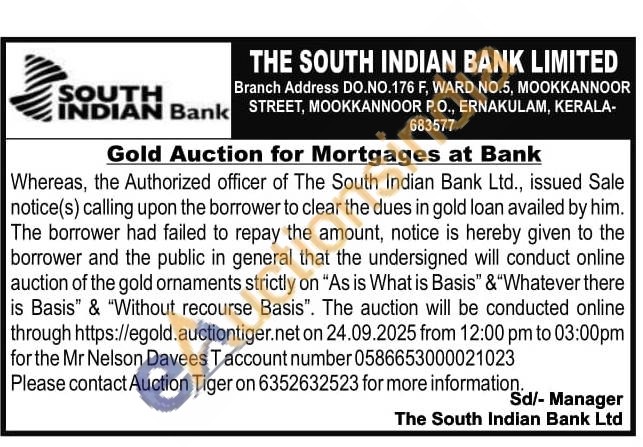 South Indian Bank Gold Auctions Auction in Ernakulam