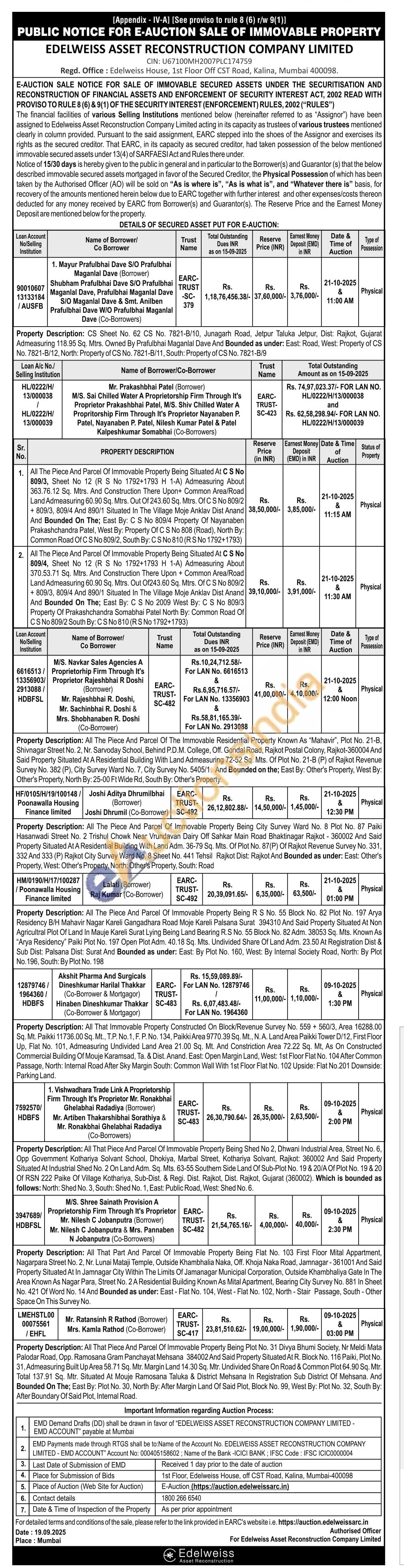 Property Description: All That Part And Parcel Of Immovable Property Being Flat No. 103 First Floor Mital Appartment, Nagarpara Street No. 2, Nr. Lunai Mataji Temple, Outside Khambhalia Naka, Off. Khoja Naka Road, Jamnagar - 361001 And Said Property Situated At In Jamnagar City Within The Limits Of Jamanagar Municipal Corporation, Outside Khambhaliya Gate In The Area Known As Nagar Para, Street No. 2 A Residential Building Known As Mital Apartment, Bearing City Survey No. 881 In Sheet No. 421 Of Word No. 14 And Bounded as under: East - Flat No. 104, West - Flat No. 102, North - Stair Passage, South - Other Space On This Survey No