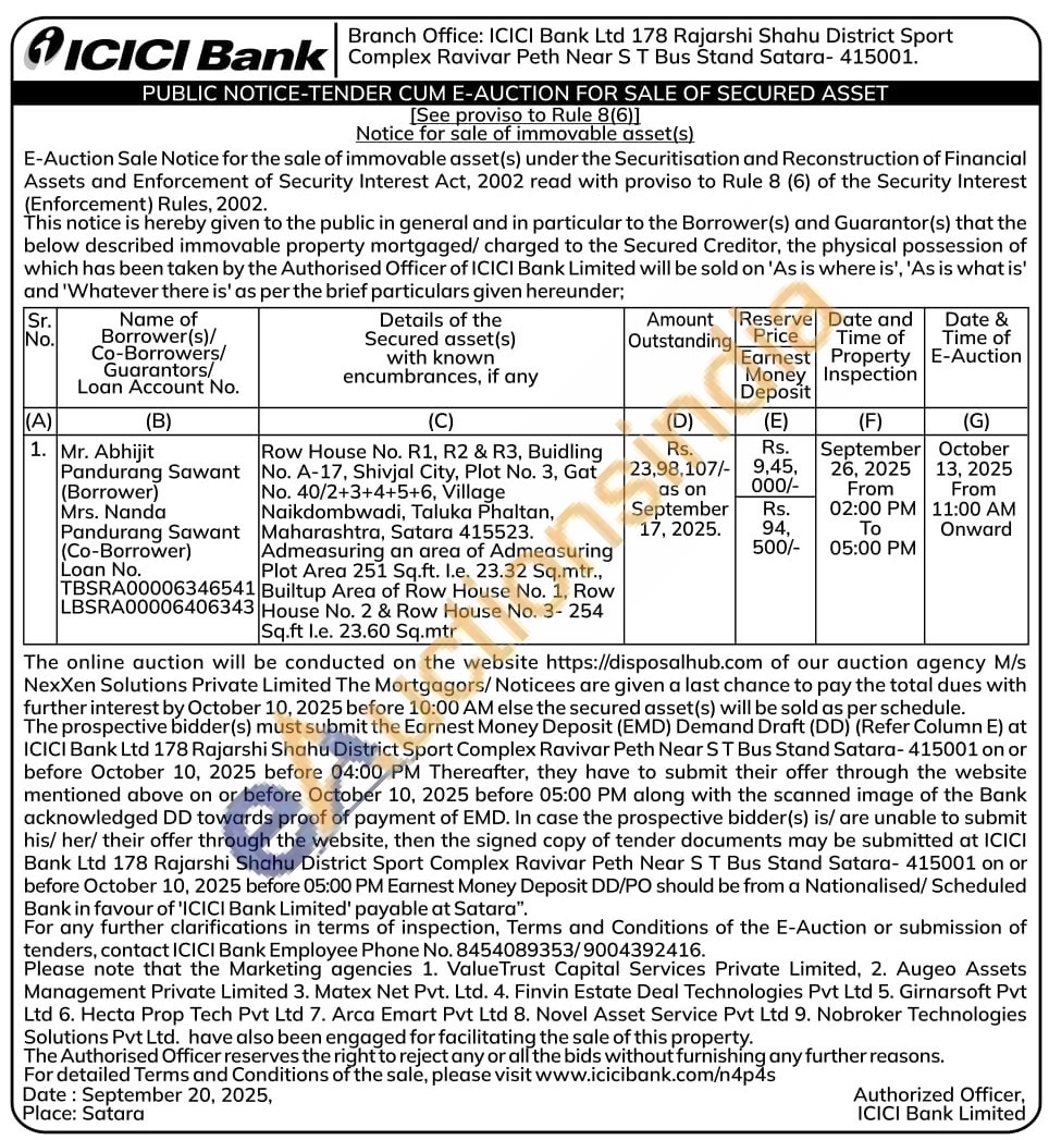 No. 40/2+3+4+5+6, Village Naikdombwadi, Taluka Phaltan, Maharashtra, Satara 415523. Row House No. R1, R2 & R3, Buidling No. A-17, Shivjal City, Plot No. 3, Gat
