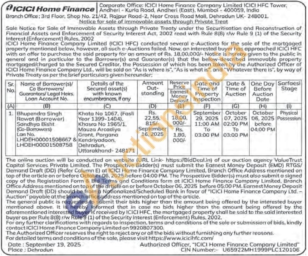 Khata No 1067, (Fasli Year 1399-1404) Khasra No 1965/1, Mauza Arcadiya Grant, Pargana Uttarakhand-248171 Kendriyadoon. Dehradun,