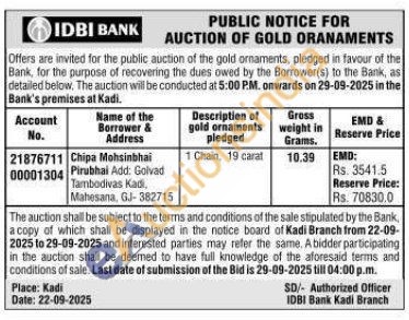 IDBI Bank Gold Auctions Auction in Mahesan