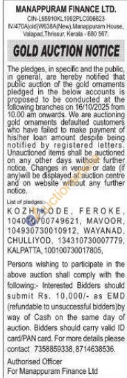 Manappuram Finance Ltd Gold Auctions Auction in Thrissur