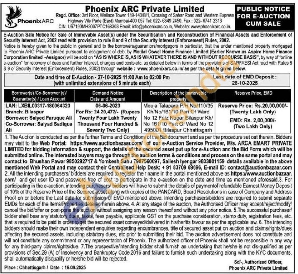 Mouja Talapara P/H No/110/35 Kh/No/161/10 Part Of Ward No 12 Faiz Nagar Bilaspur Kh/No 161/10 Part Of Ward No 12 495001 Bilaspur Chhattisgarh